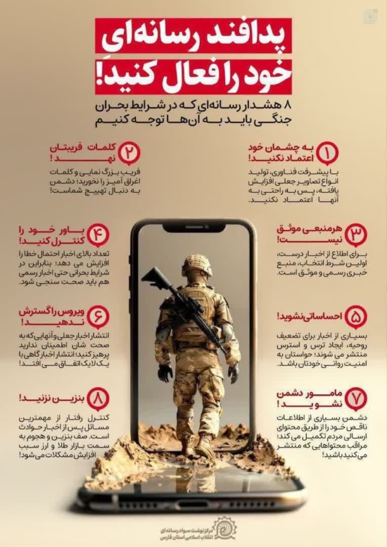 هشت هشدار رسانه ای که در شرایط بحران و جنگی می بایست به آنها توجه کرد.
