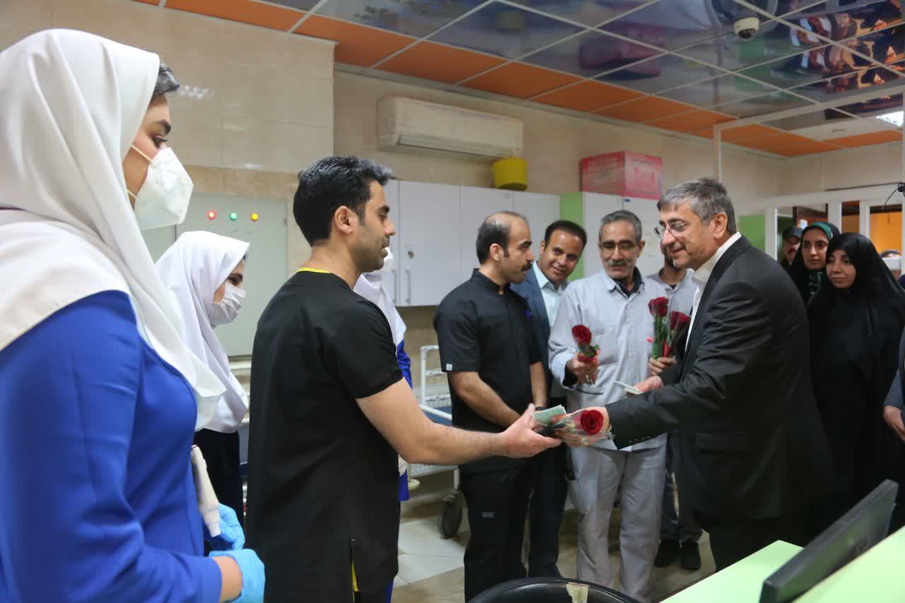 استاندار لرستان در این دیدار از کادر کشیک در بیمارستان با اهدا گل و هدایایی تقدیر کرد.