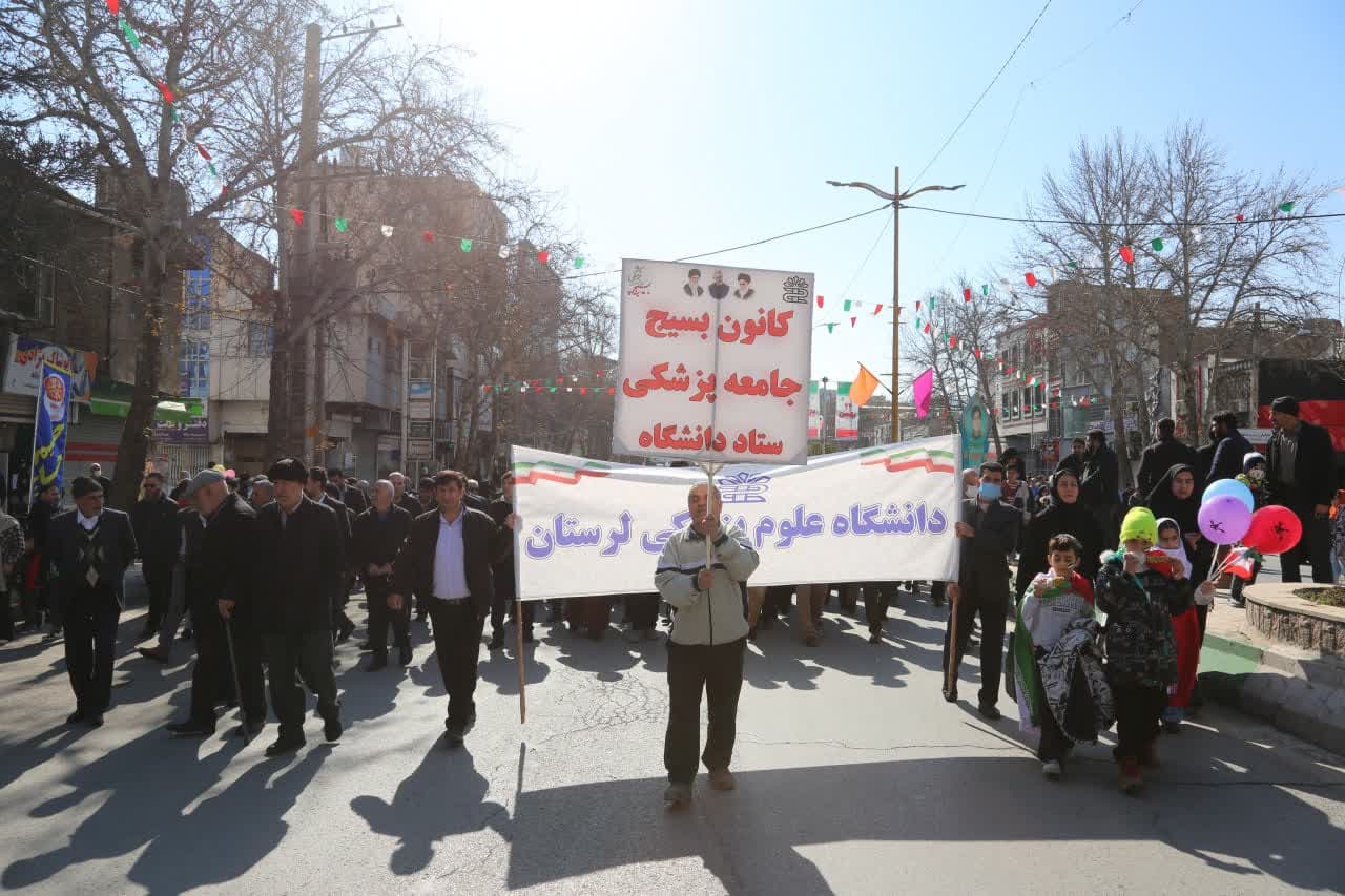 حضور دانشگاهیان علوم‌پزشکی لرستان در مراسم راهپیمایی ۲۲ بهمن